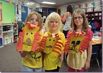 Our yellow monster today was really cute: “Yellow, Yellow, sat in jello!” and our poem was “Yellow is a lemon, Yellow is star, Yellow is the sun in the sky so far!” We learned the importance of being yourself and making good choices with the story Dandelion by Don Freeman. We also made cute Lion puppets. Thanks to Holly’s mom for sending yellow Oreos for us to enjoy during snack time!